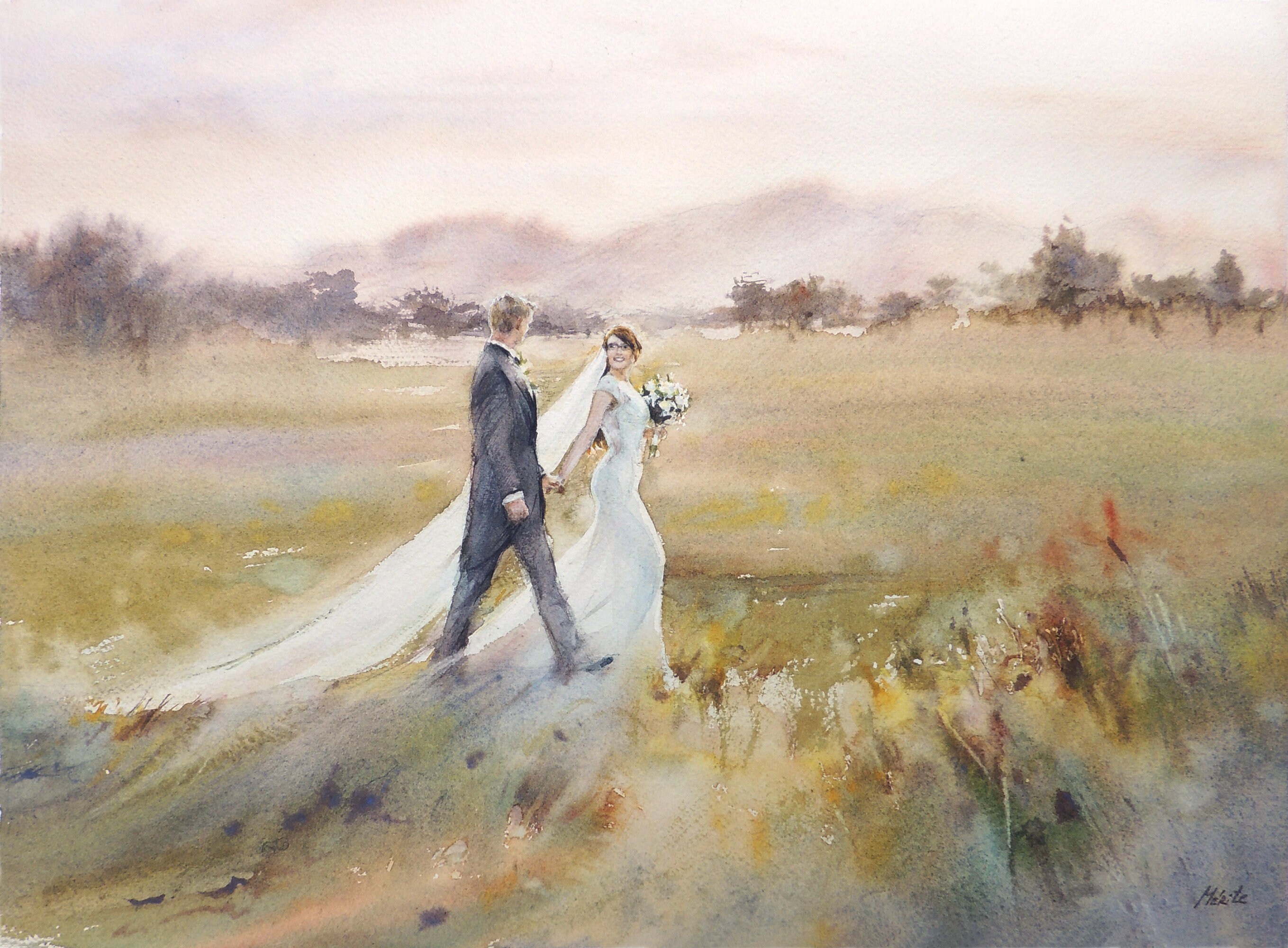 Original Custom Wedding Portrait Scene Watercolor Landscape Etsy Denmark